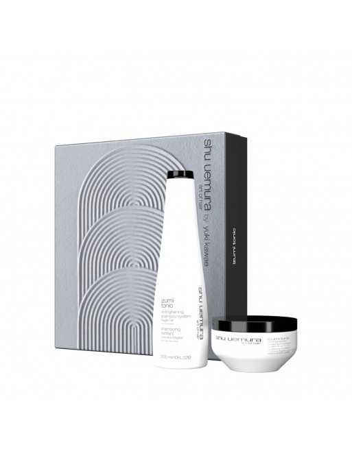 Este kit presenta un dúo dinámico: champú fortificante izumi tonic y acondicionador fortificante izumi tonic